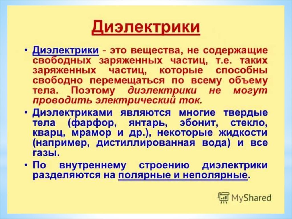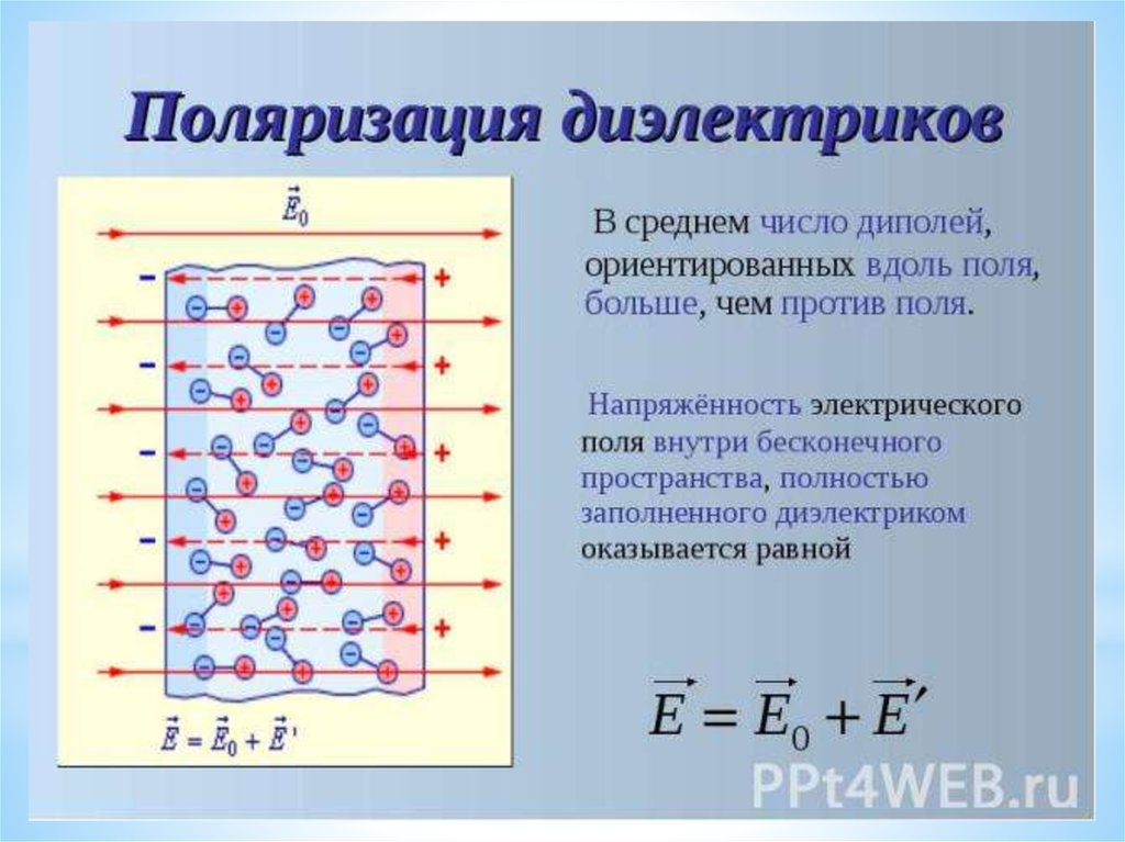 *Поле внутри диэлектрика ослабляется.Степень ослабления поля зависит от