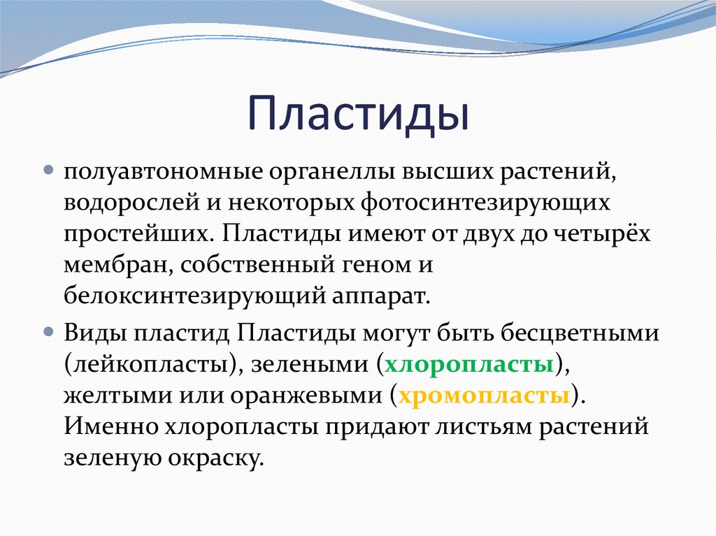 Пластидыполуавтономные органеллы высших растений,
