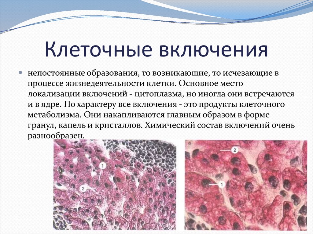 и в ядре. По характеру все включения - это продукты клеточного
