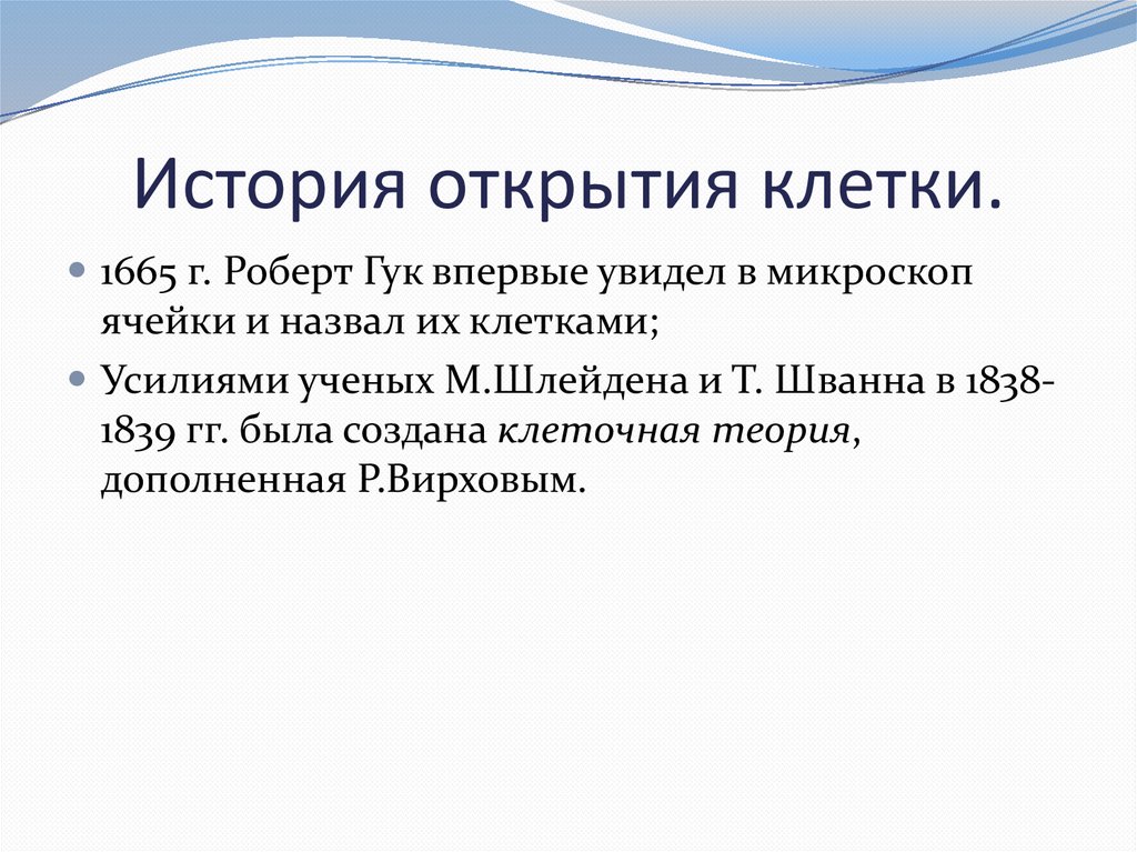 Усилиями ученых М.Шлейдена и Т. Шванна в 18381839 гг. была создана клеточная теория,