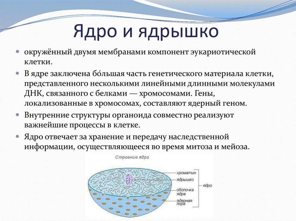Ядро отвечает за хранение и передачу наследственной