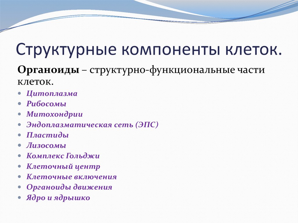 Структурные компоненты клеток.Органоиды – структурно-функциональные части