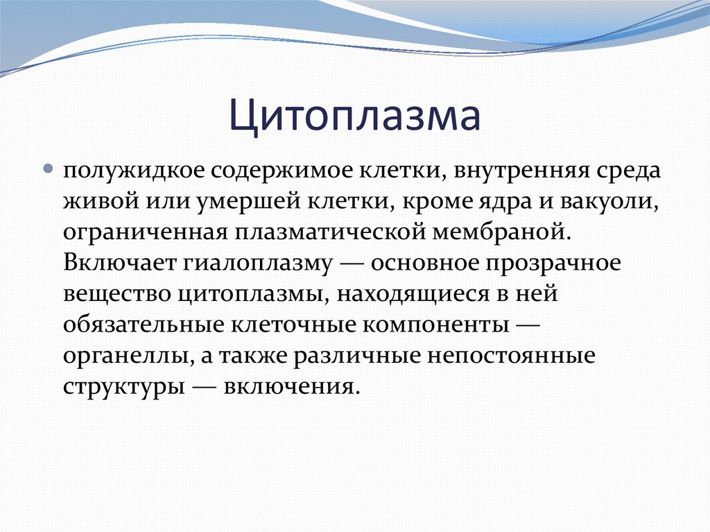 Цитоплазмаполужидкое содержимое клетки, внутренняя среда