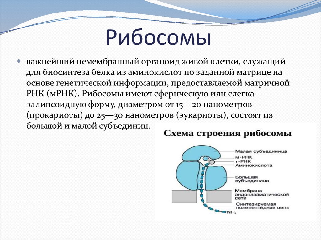 РНК (мРНК). Рибосомы имеют сферическую или слегка