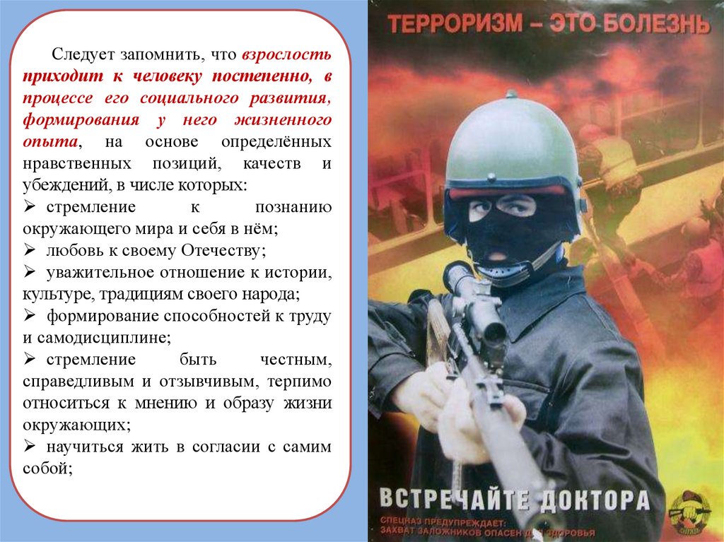 1. Представление о терроризме2. Нравственная позиция в