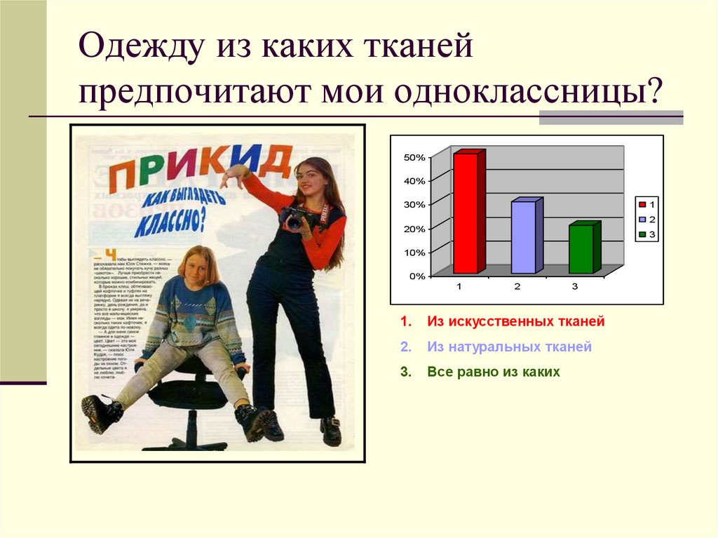 16. Одежду из каких тканей предпочитают мои одноклассницы?