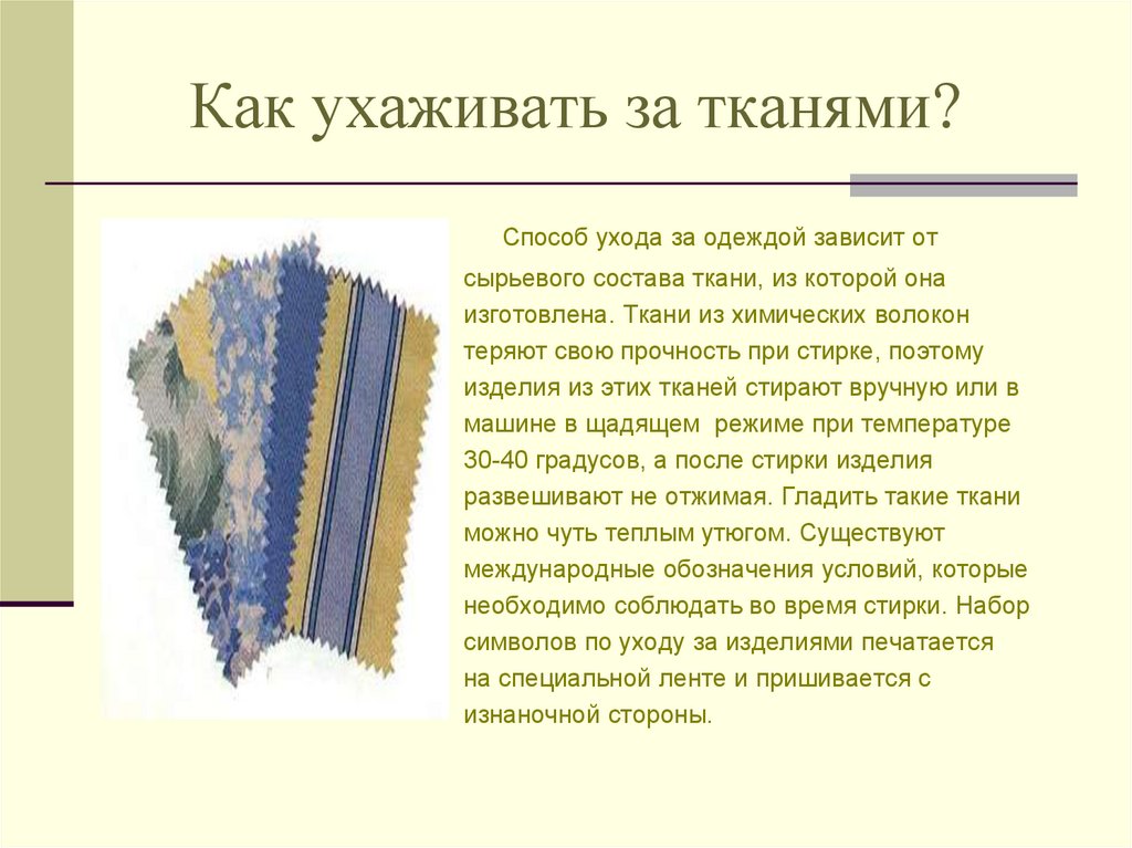 Способ ухода за одеждой зависит отсырьевого состава ткани, из которой она