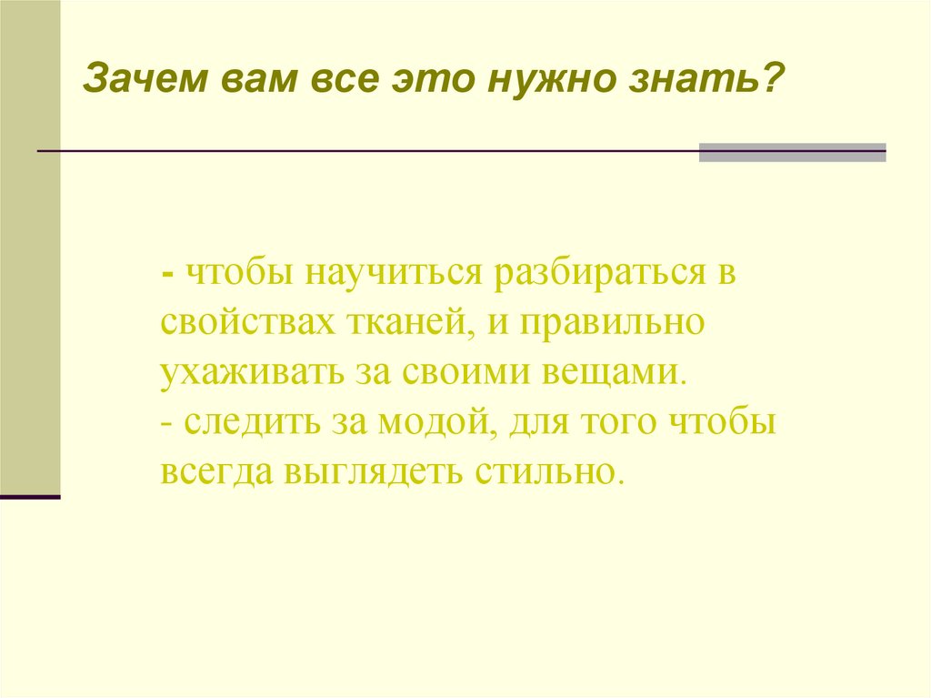3. - чтобы научиться разбираться в свойствах тканей, и правильно ухаживать за своими вещами. - следить за модой, для того чтобы