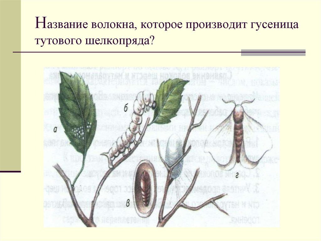 6. Название волокна, которое производит гусеница тутового шелкопряда?