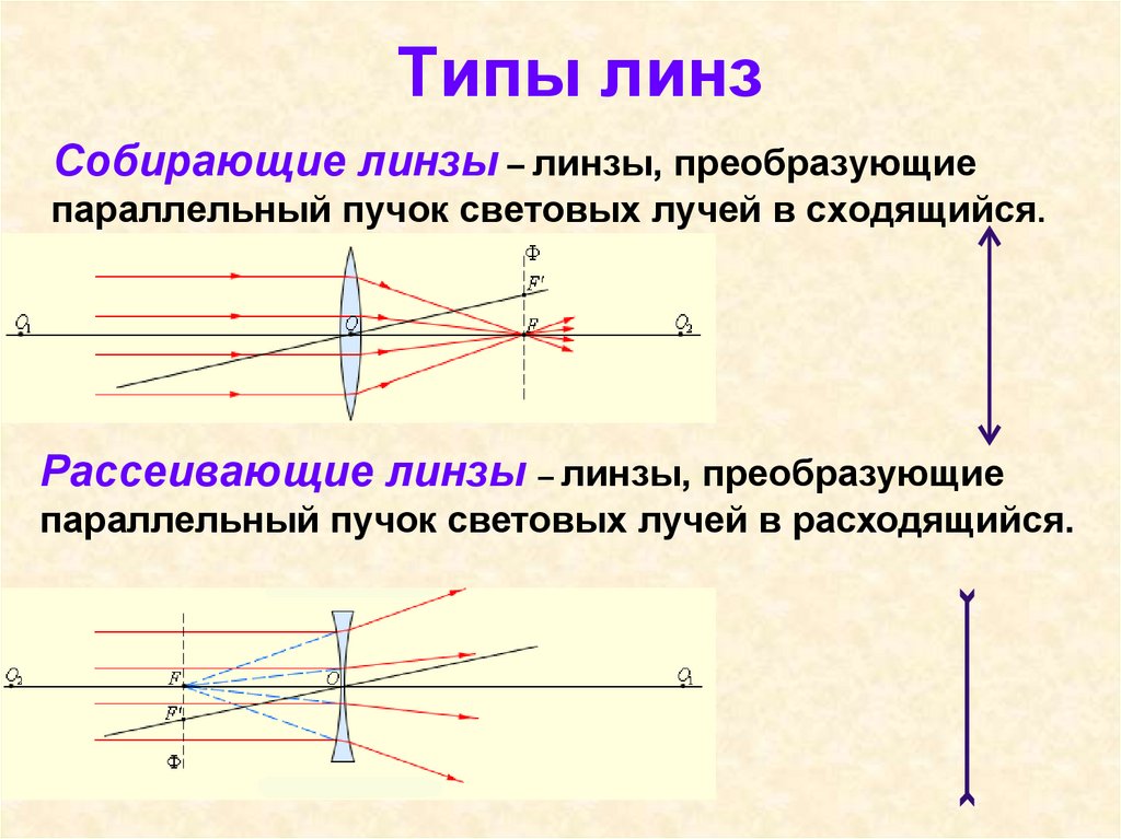 Собирающие линзы – линзы, преобразующиепараллельный пучок световых лучей в сходящийся.