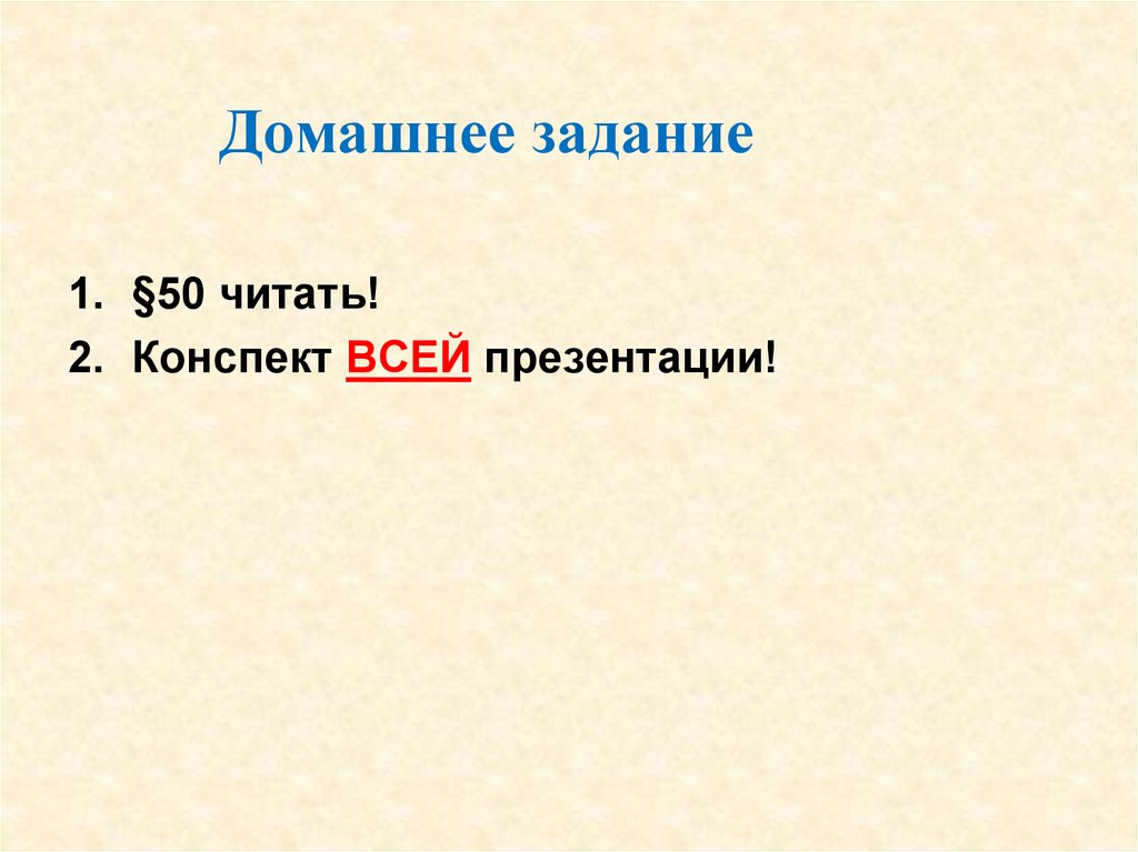 1. §50 читать!2. Конспект ВСЕЙ презентации!