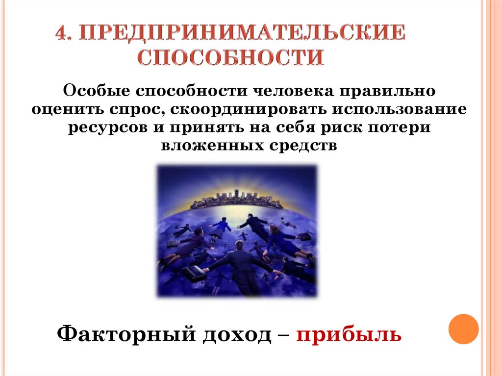 Особые способности человека правильнооценить спрос, скоординировать использование