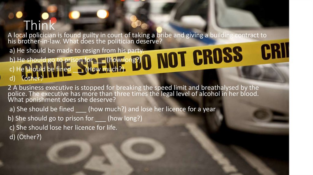 2 A business executive is stopped for breaking the speed limit and breathalysed by the