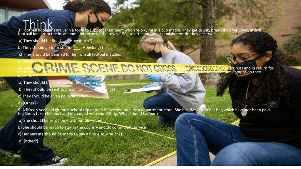 football fans from the local team and terrorize the town. 150 are arrested. What punishment do they deserve?