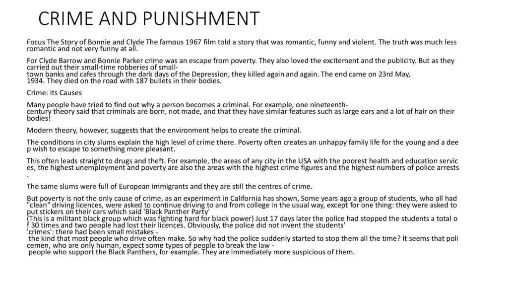 CRIME AND PUNISHMENTFocus The Story of Bonnie and Clyde The famous 1967 film told a story that was romantic, funny and violent. The truth was much less