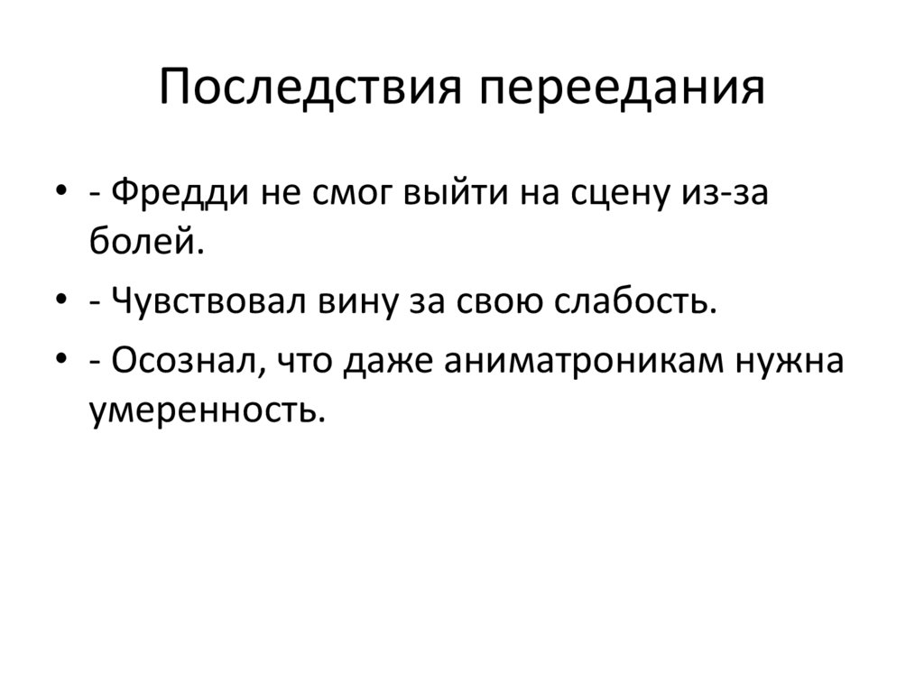 Последствия переедания• - Фредди не смог выйти на сцену из-за