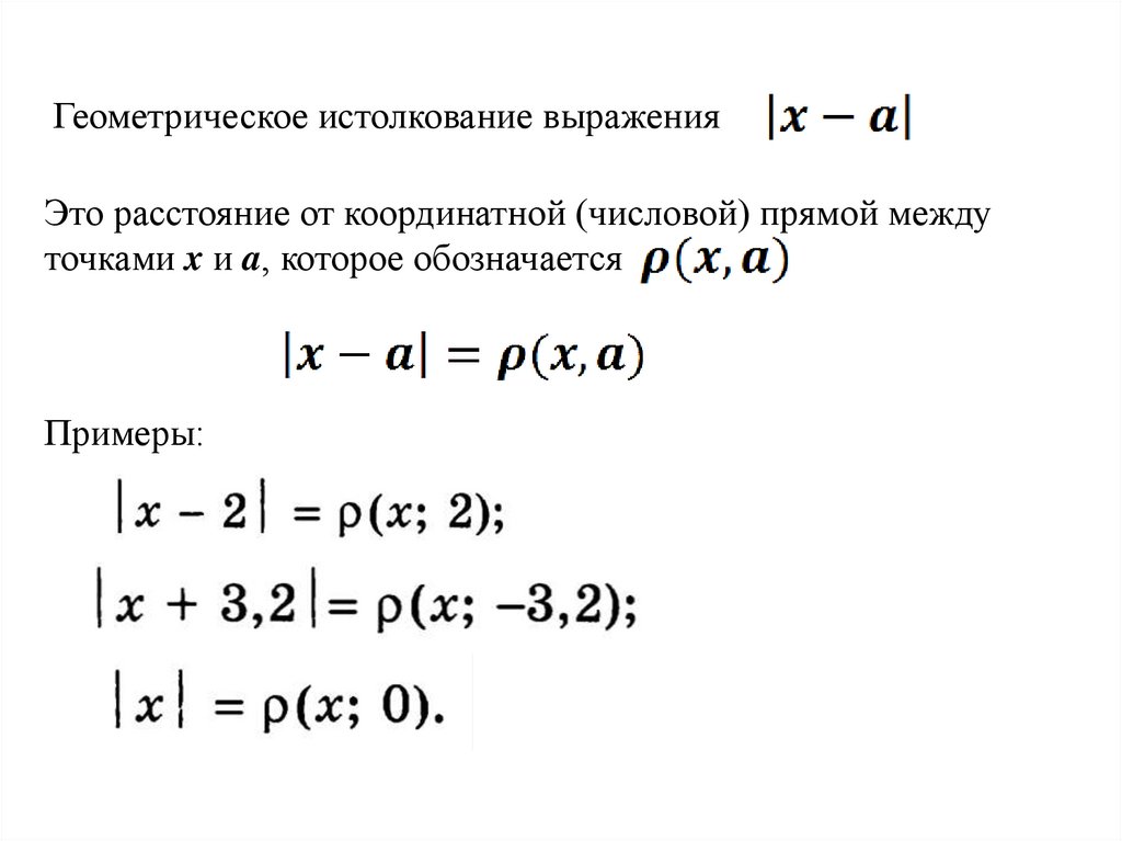 Геометрическое истолкование выраженияЭто расстояние от координатной (числовой) прямой между