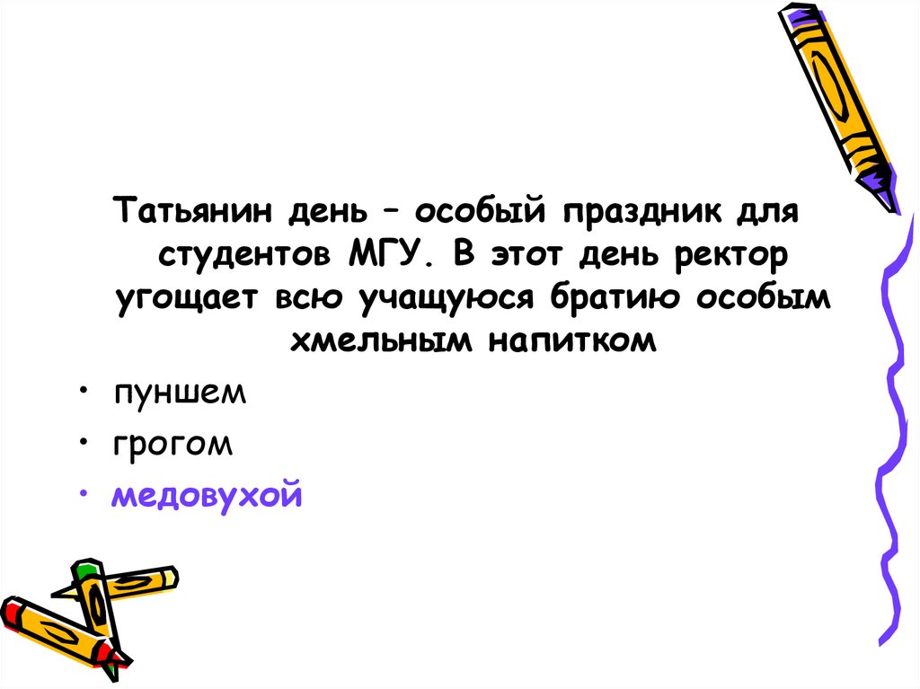 Татьянин день – особый праздник длястудентов МГУ. В этот день ректор