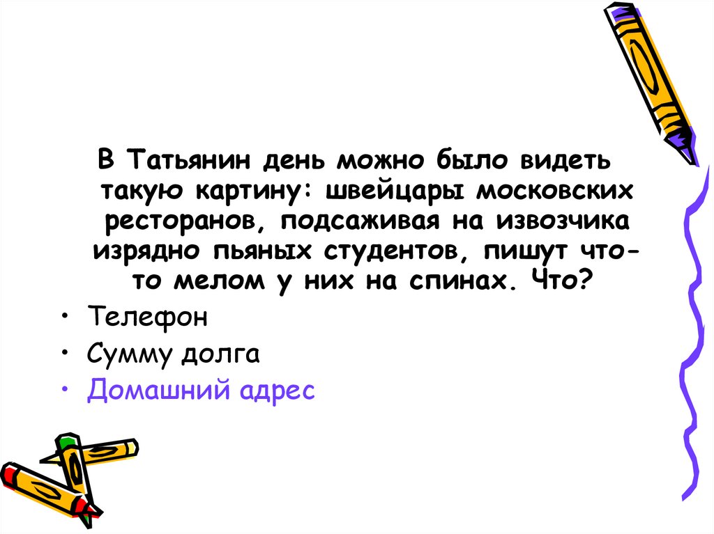 В Татьянин день можно было видетьтакую картину: швейцары московских