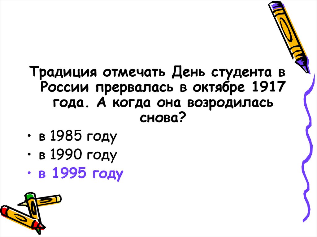 Традиция отмечать День студента вРоссии прервалась в октябре 1917