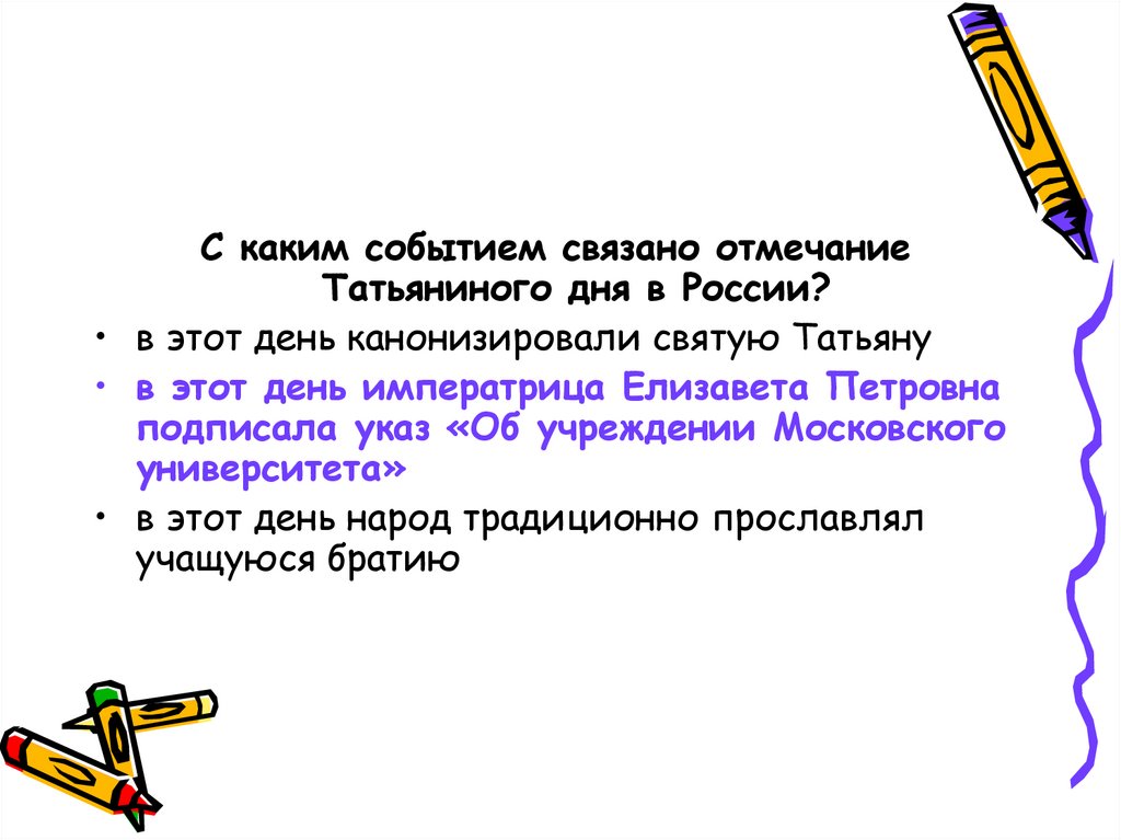 С каким событием связано отмечаниеТатьяниного дня в России?