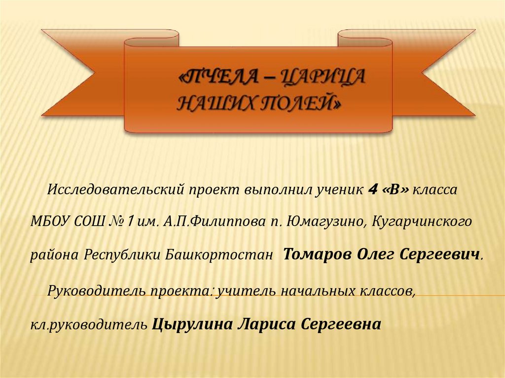 Исследовательский проект выполнил ученик 4 «В» классаМБОУ СОШ №1 им. А.П.Филиппова п. Юмагузино, Кугарчинского
