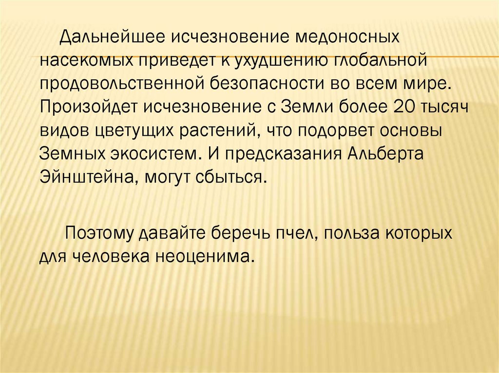 Дальнейшее исчезновение медоносныхнасекомых приведет к ухудшению глобальной