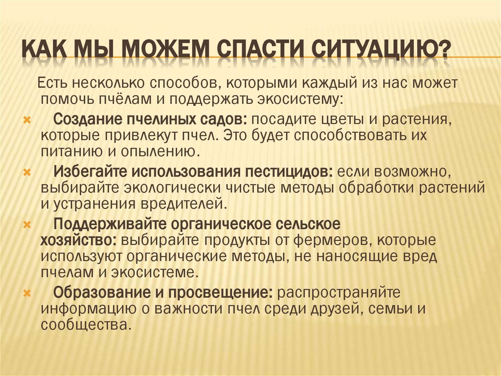 КАК МЫ МОЖЕМ СПАСТИ СИТУАЦИЮ?Есть несколько способов, которыми каждый из нас может