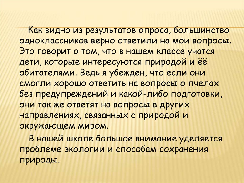 Как видно из результатов опроса, большинствоодноклассников верно ответили на мои вопросы.