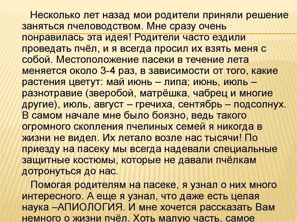 Несколько лет назад мои родители приняли решениезаняться пчеловодством. Мне сразу очень