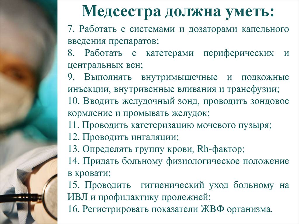 Медсестра должна уметь:1. Выполнять назначения врача в пределах своей