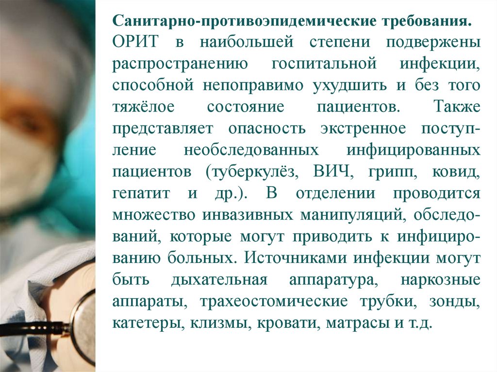 множество инвазивных манипуляций, обследований, которые могут приводить к инфицированию больных. Источниками инфекции могут