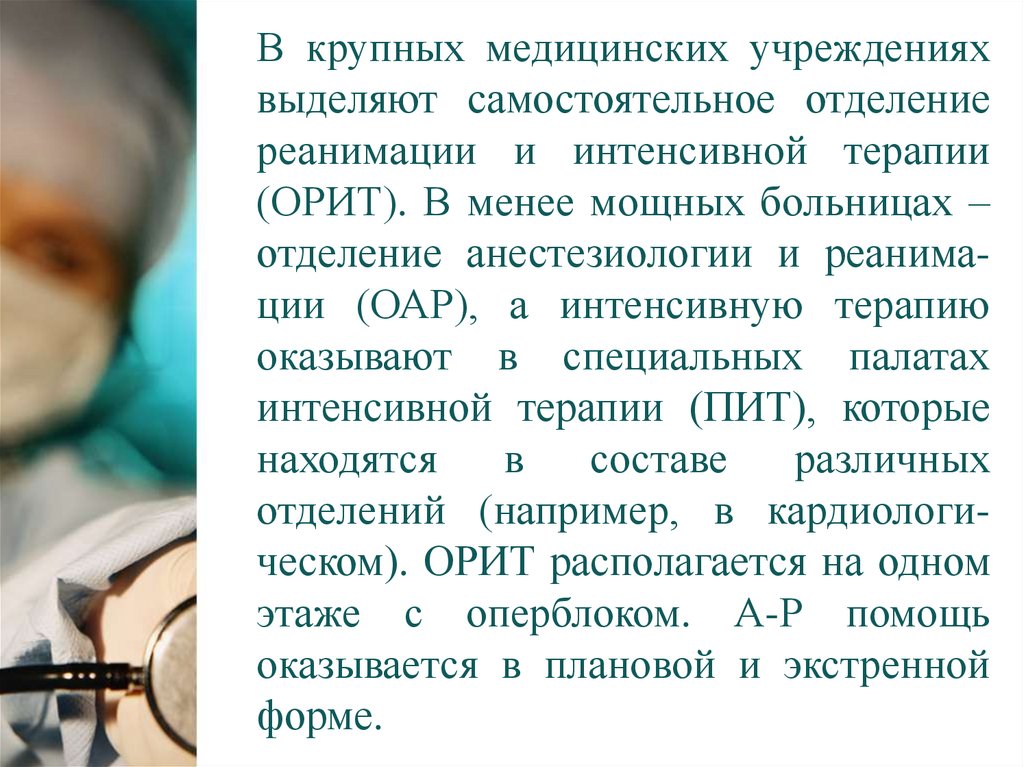 отделение анестезиологии и реанимации (ОАР), а интенсивную терапию