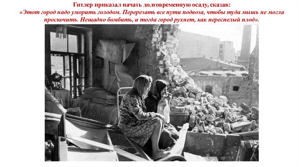 Гитлер приказал начать долговременную осаду, сказав:«Этот город надо уморить голодом. Перерезать все пути подвоза, чтобы туда мышь не могла