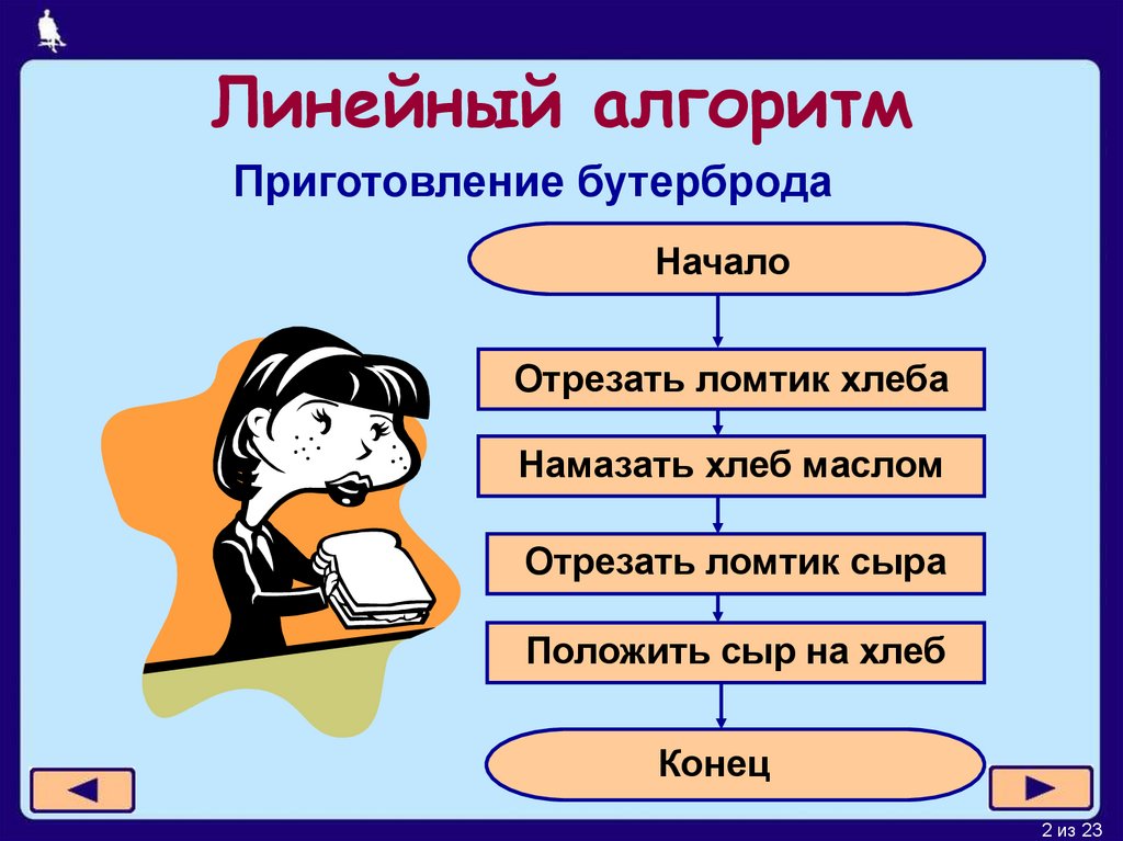 Линейный алгоритм алгоритм, в котором командывыполняются в порядке их