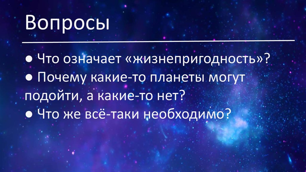 Вопросы● Что означает «жизнепригодность»?