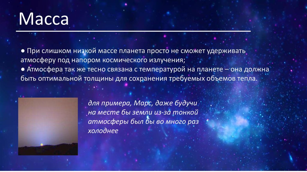 Масса● При слишком низкой массе планета просто не сможет удерживать