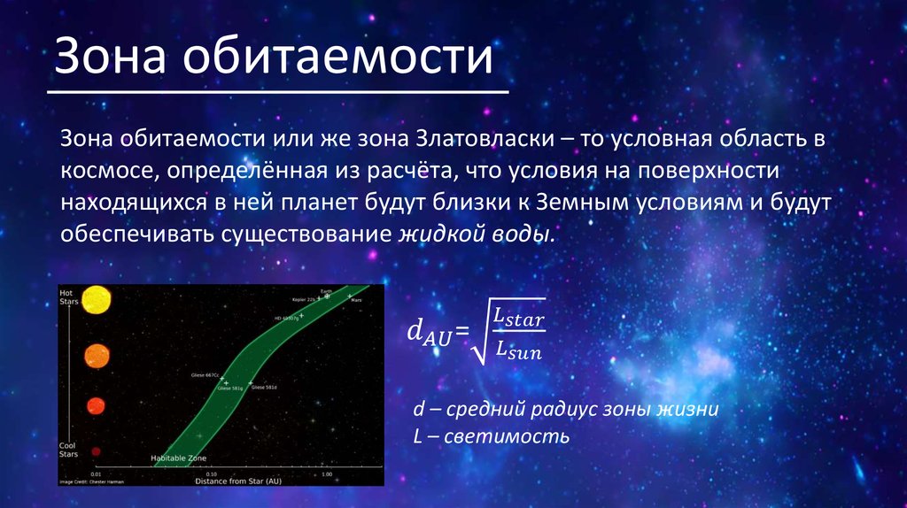 Зона обитаемостиЗона обитаемости или же зона Златовласки – то условная область в
