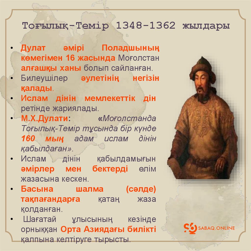 Тоғылық-Темір 1348-1362 жылдары• Дулат