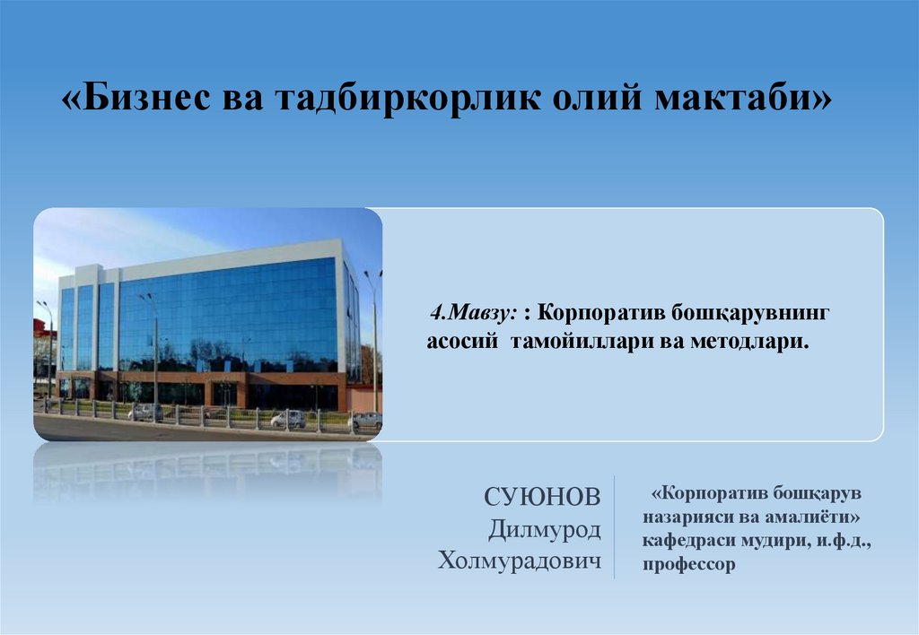 «Бизнес ва тадбиркорлик олий мактаби»4.Мавзу: : Корпоратив бошқарувнинг