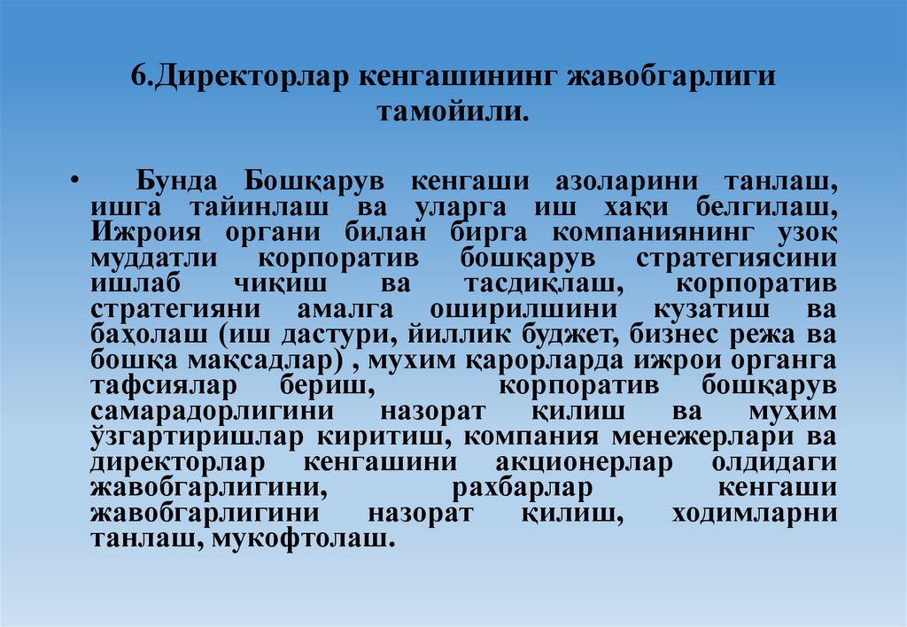 6.Директорлар кенгашининг жавобгарлигитамойили.