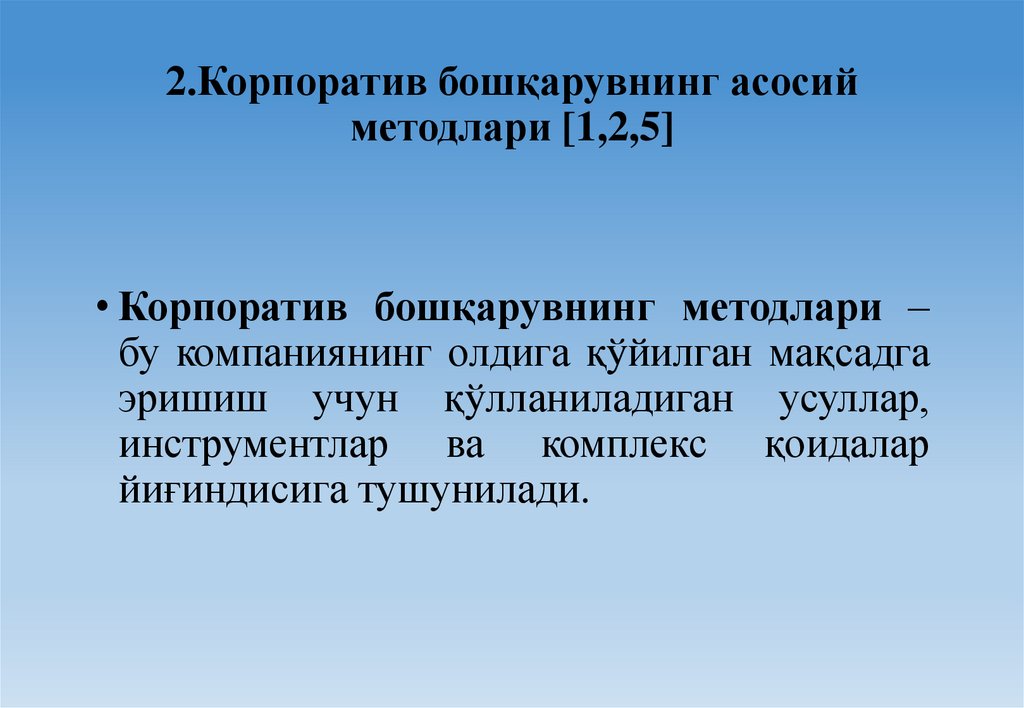 2.Корпоратив бошқарувнинг асосийметодлари [1,2,5]