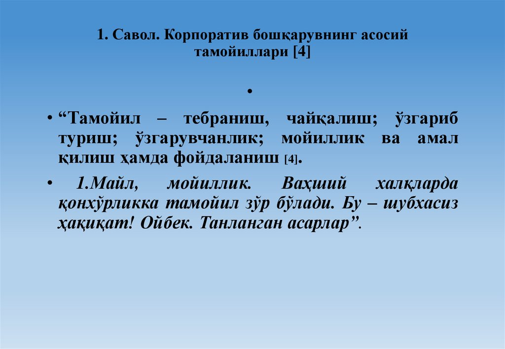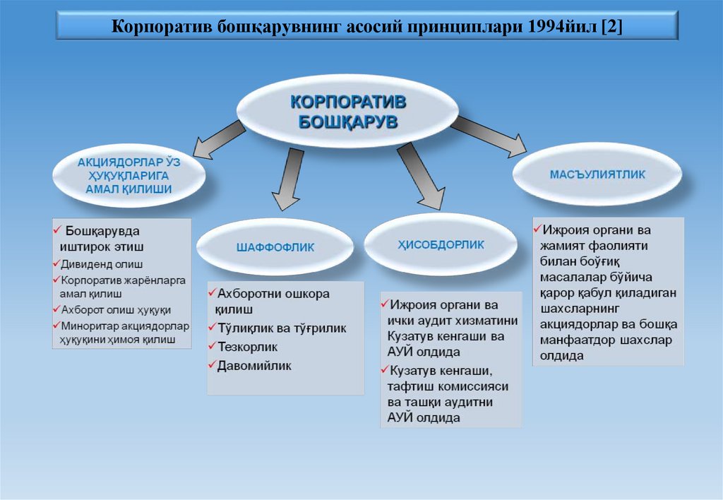 1. Савол. Корпоратив бошқарувнинг асосийтамойиллари [4]