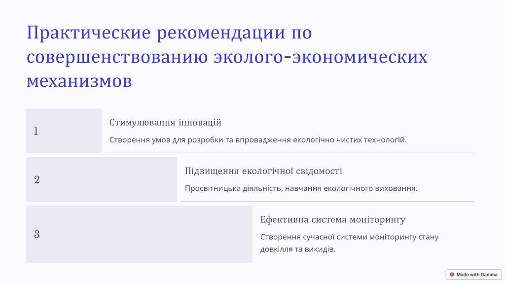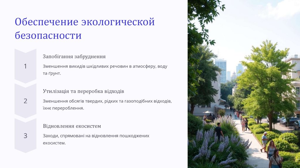 Створення умов для розробки та впровадження екологічно чистих технологій.