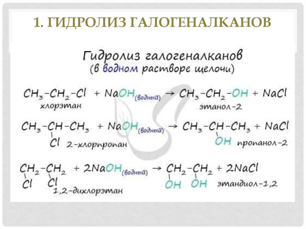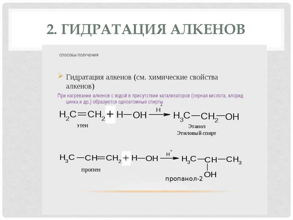 1. ГИДРОЛИЗ ГАЛОГЕНАЛКАНОВ12. 2. Гидратация алкенов