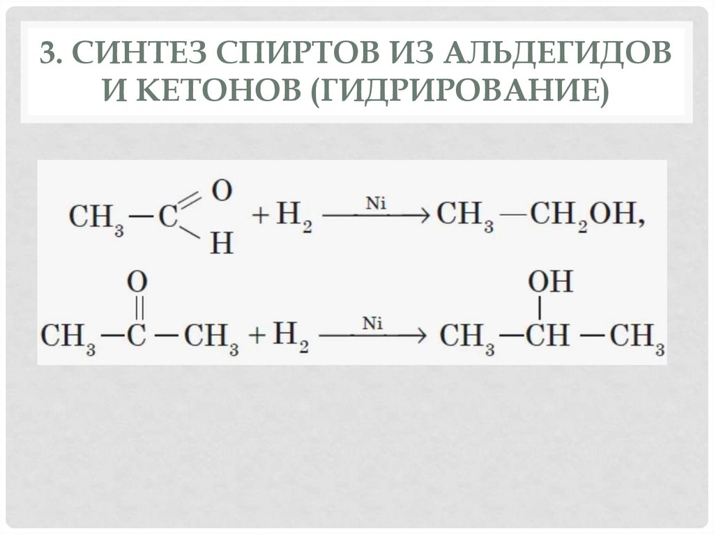 2. ГИДРАТАЦИЯ АЛКЕНОВ13. 3. Синтез спиртов из альдегидов и кетонов (Гидрирование)