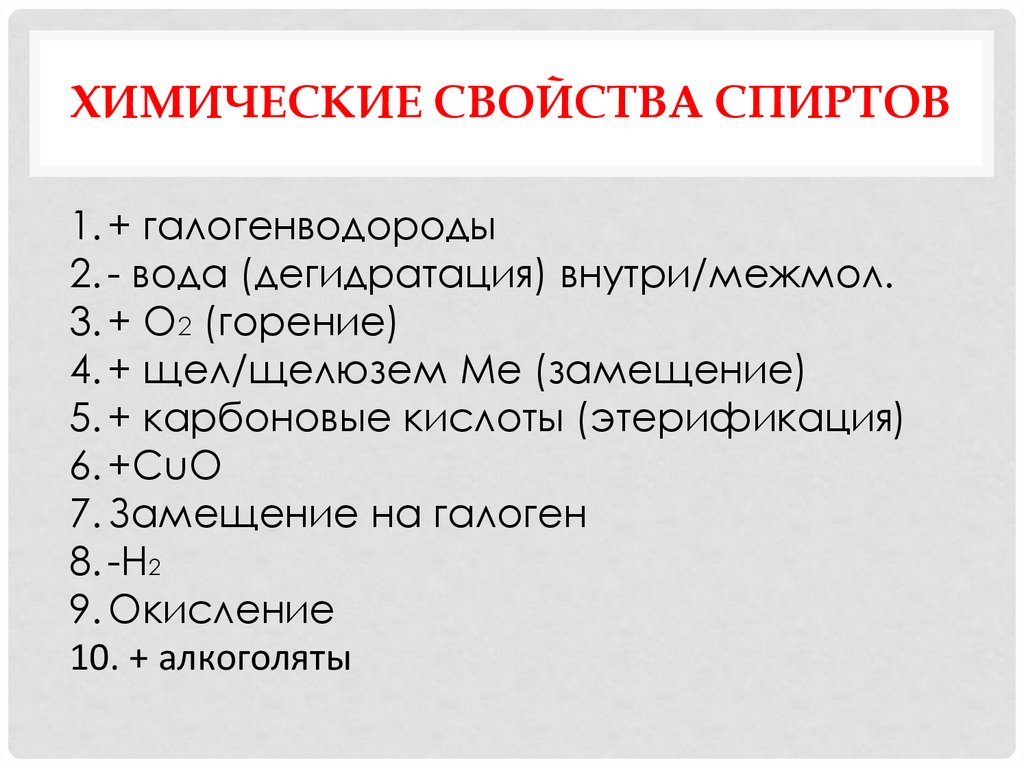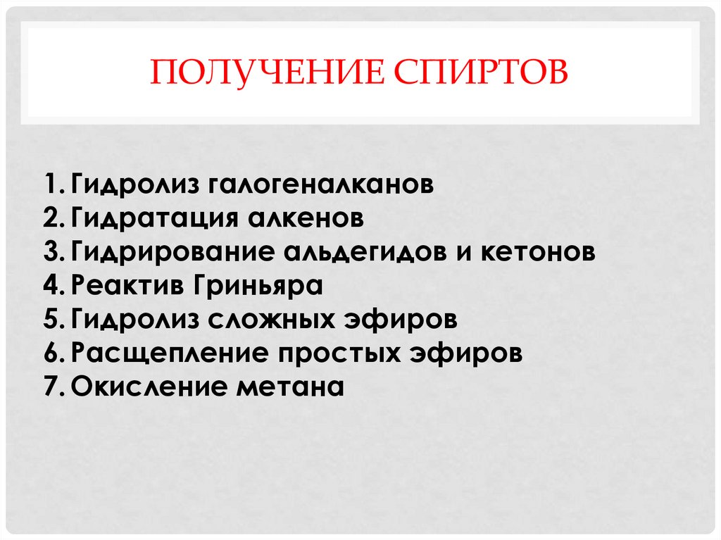 ФИЗИЧЕСКИЕ СВОЙСТВА10. Получение спиртов