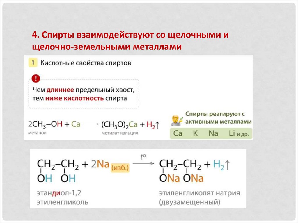 4. Спирты взаимодействуют со щелочными ищелочно-земельными металлами