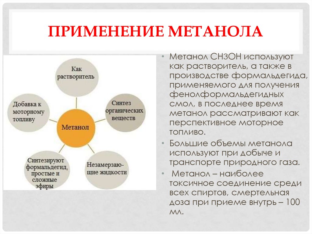 38. ПРИМЕНЕНИЕ МЕТАНОЛА