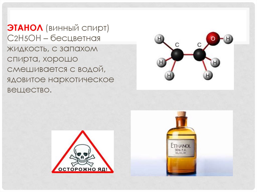 ЭТАНОЛ (винный спирт)С2Н5ОН – бесцветная